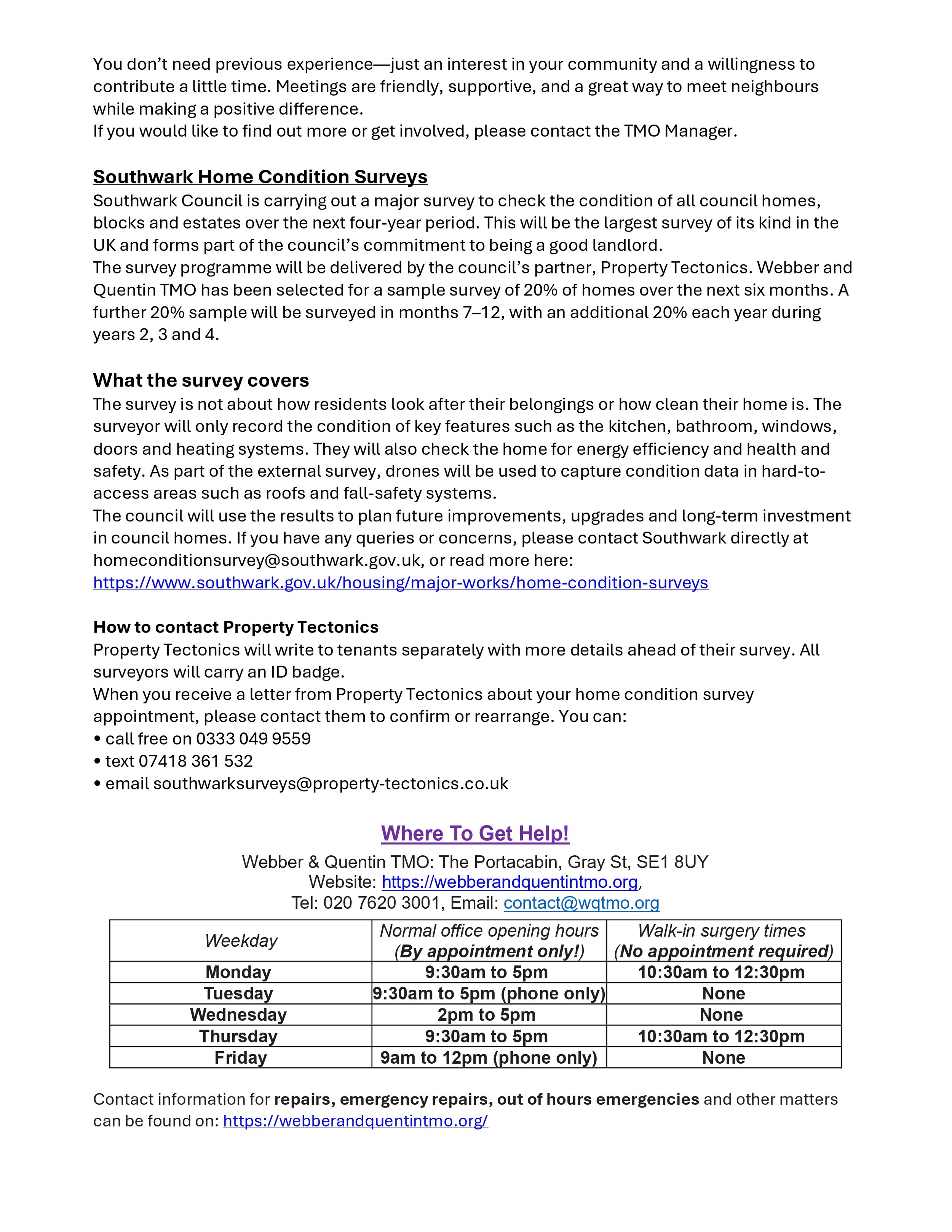 Webber & Quentin TMO – Residents Satisfaction Survey 2024/25